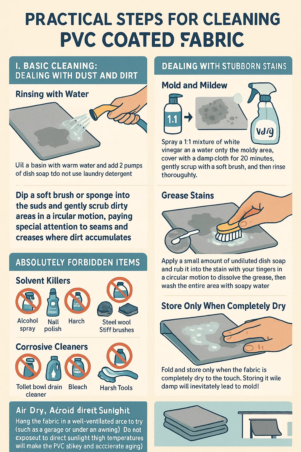 Oto praktyczne kroki czyszczenia Tkanina powlekana PCV :
